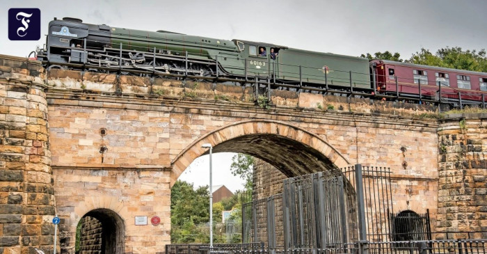 У цю суботу, в день 200-ї річниці цієї дати, все було так, як і тоді - двовісний паровоз (а точніше - репліка паровоза, який вперше проїхав цією лінією) пухкаючи тягнув поїзд з вугільними вагонами. На ньому перебували також і почесні гості, а залізничний насип був заповнений тисячами глядачів. Найкращий вид на Дарлінгтон - з великої парковки за спортзалом. Там залізнична колія пролягає над річкою Скерне. Вона стелиться над трьома арками з жовтуватого пісковику. "Друзі залізниці Стоктона та Дарлінгтона" з гордістю називають це місце "найстарішим залізничним мостом у світі".