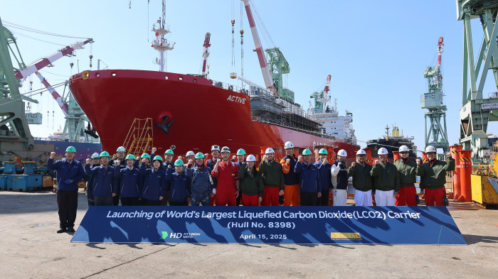 На причалі південнокорейської судноверфі HD Hyundai Mipo у порту Ульсан відбулася офіційна церемонія спуску на воду найбільшого у світі танкера місткістю 22 тис. куб. м для транспортування зрідженого вуглекислого газу (LCO2).