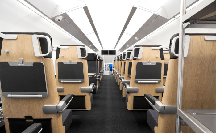 У кожному поїзді – 357 місць для сидіння. Передбачено регулювання пасажирських крісел, місця для пасажирів оснащені індивідуальним освітленням, електророзетками, столиками.
