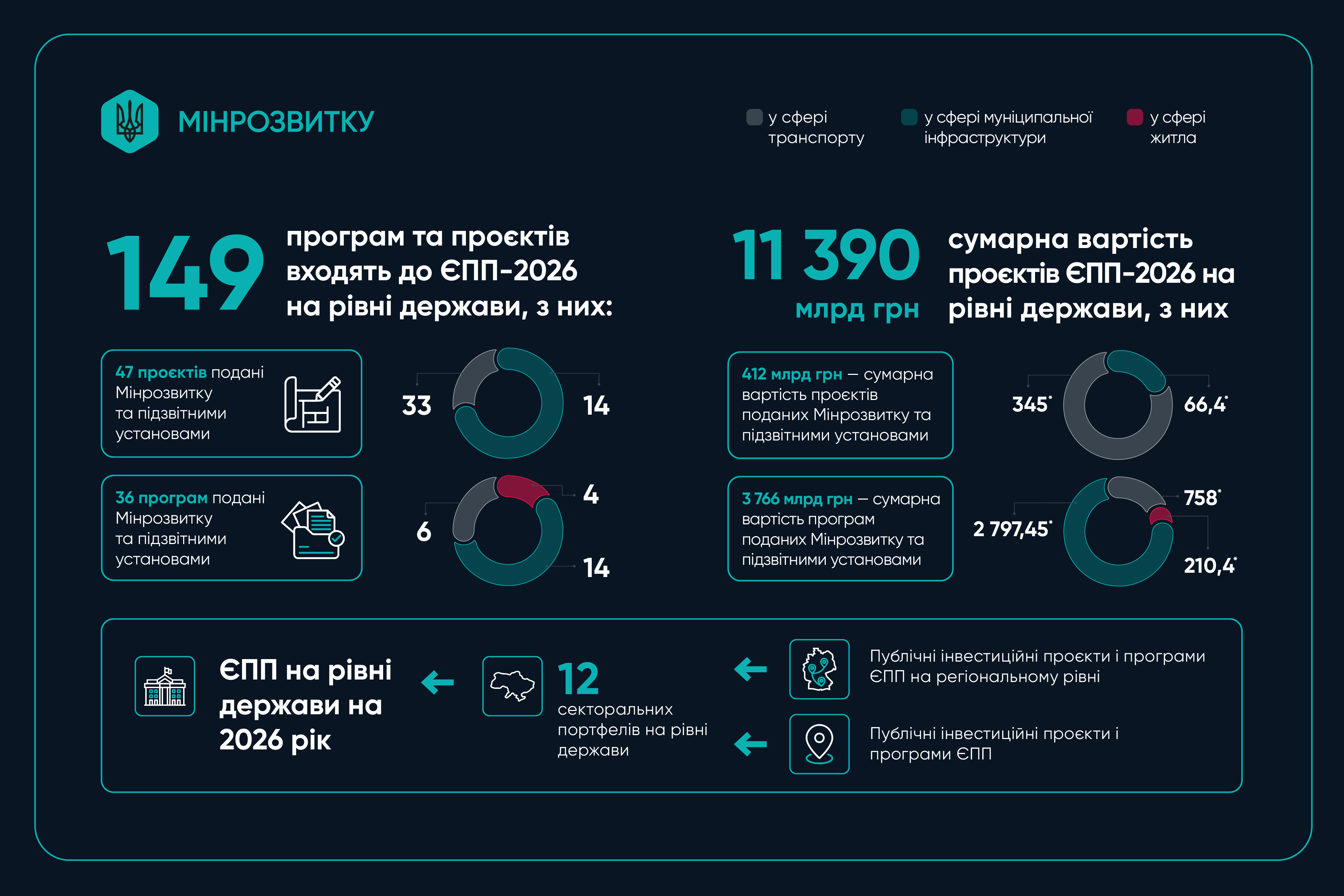 ЄПП-2026 на рівні держави складається з 149 проєктів та програм загальною вартістю 11 390 млрд грн.