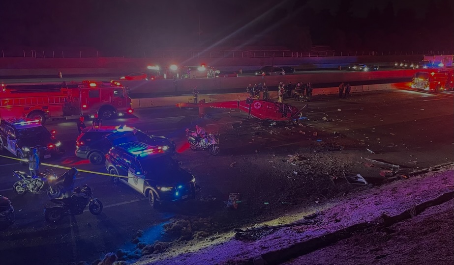 У штаті Каліфорнія (США) медичний гелікоптер упав на автомагістраль.