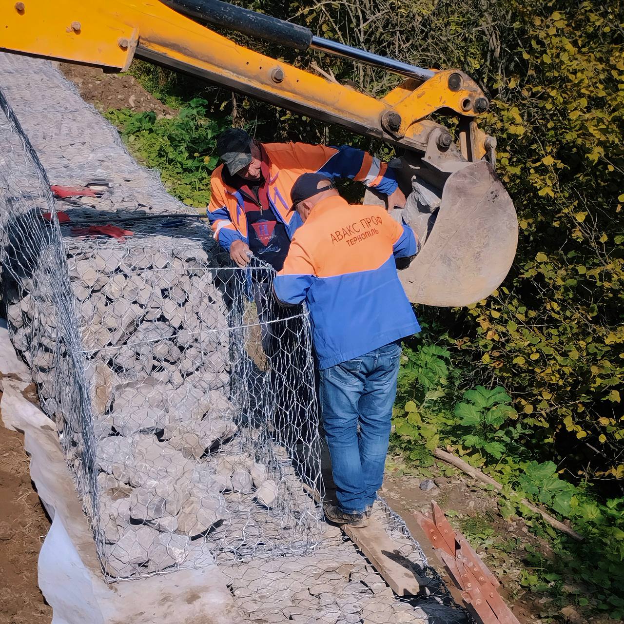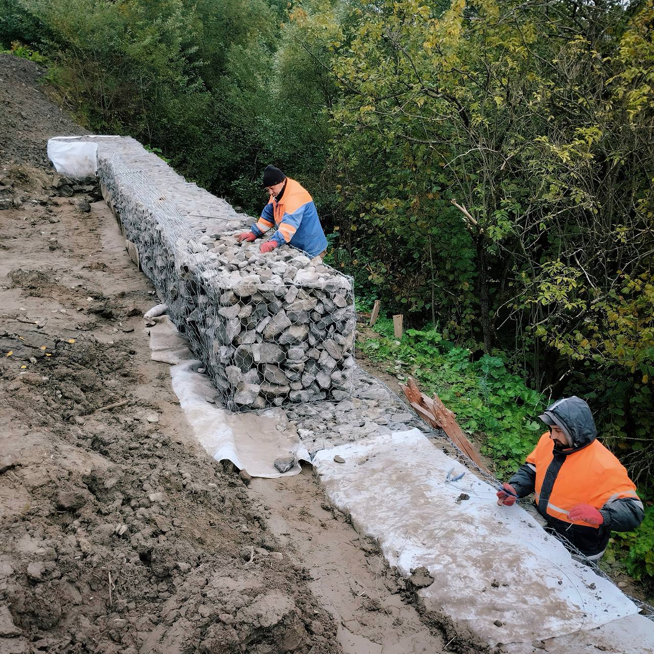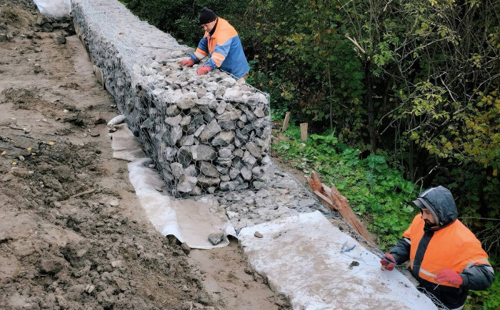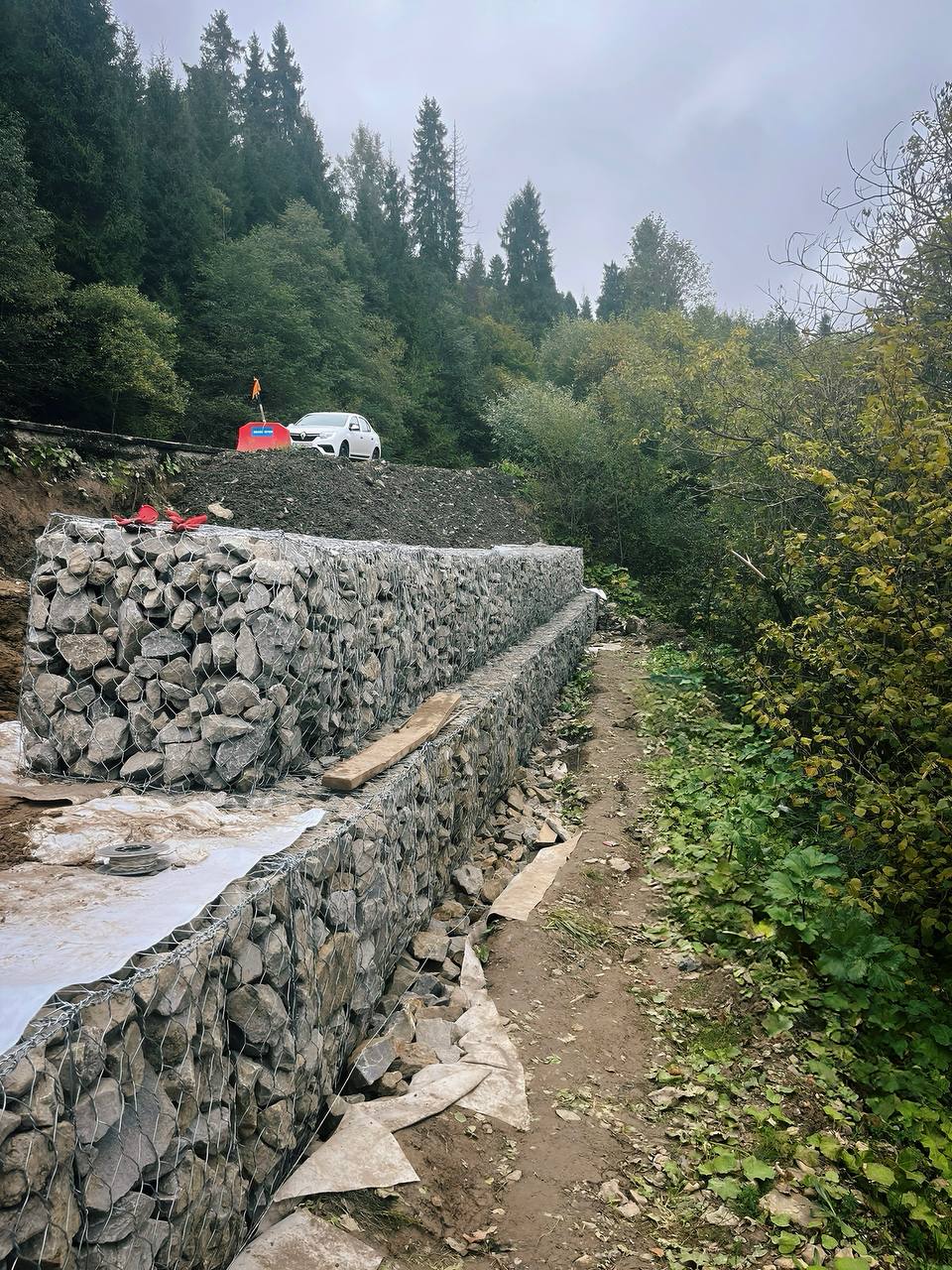 На автомобільній дорозі Т-14-23 Бориня-Мохнате на Львівщині тривають аварійно-відновлювальні роботи зі зведення підпірної стіни з габіонів.