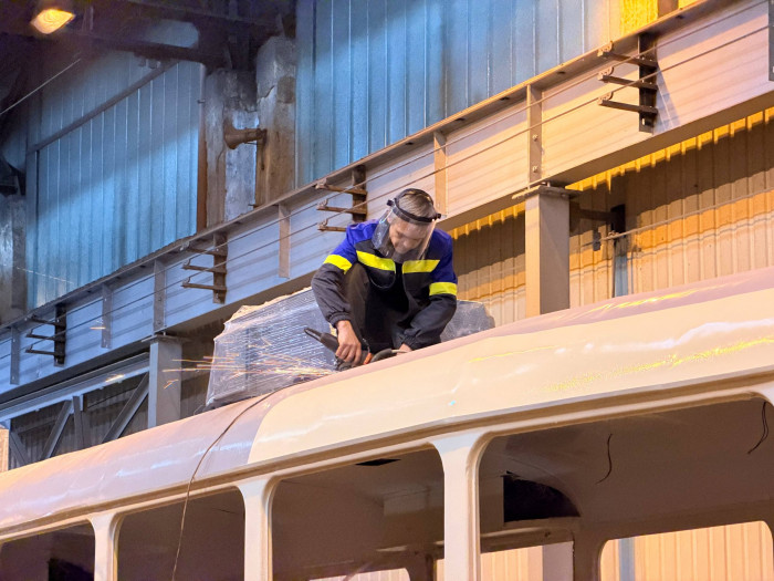 Фахівці вже завершили початковий етап робіт: провели діагностику, очищення та металообробку трамвая. Зараз вагон перебуває на стадії малярних робіт та облаштування інтер’єра.