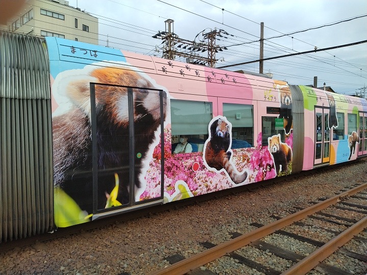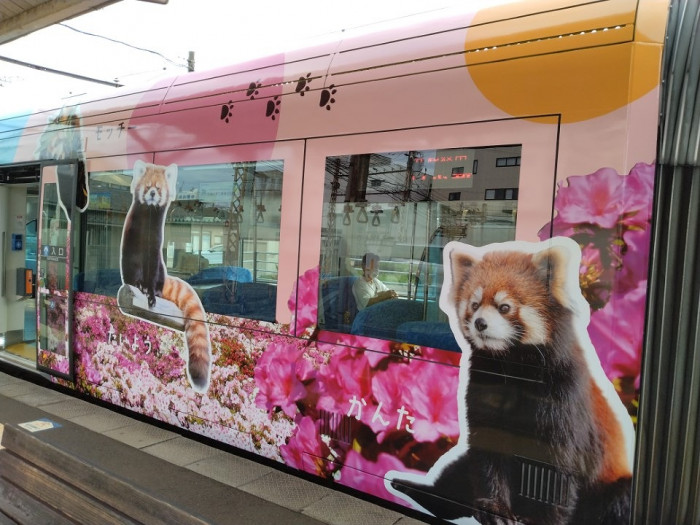 В японському місті Фукуї с вересня почав курсувати трамвай, на лівреї якого розміщені зображення червоних панд. У відповідному стилі оформлено і салон транспортного засобу.